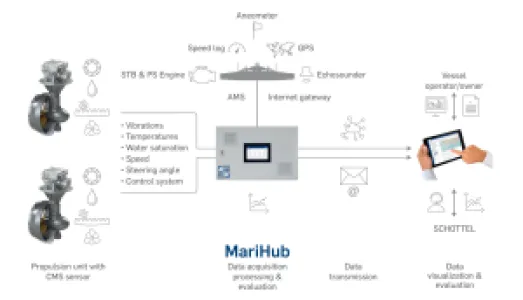 With MariHub, the vessel operator benefits from data-driven services such as performance evaluations and on-board high-speed data processing for real-time condition analysis. The local recording in a ring buffer prevents the loss of data even if the internet connection is interrupted. It is available as a stand-alone system or integrated with SCHOTTEL's Automation Systems.